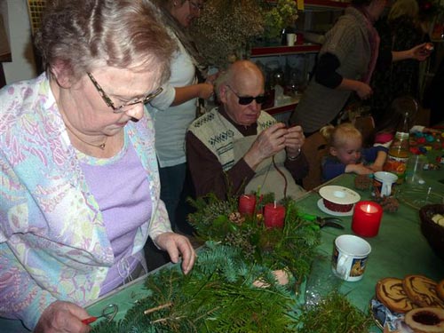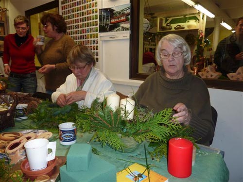 Wie bereits in den Vorjahren trafen sich auch zu Beginn der diesjährigen Adventszeit Elbenauer Frauen auf dem Planzenhof Beyme in Pechau, um in (wie immer) lustiger Runde Adventsgestecke zu basteln. Frau Beyme gab fachkundige Hinweise zur Gestaltung und verriet einige handwerkliche Tricks, so daß schöne, phantasievolle Gestecke entstanden. Nebenbei gab es aber auch viel zu erzählen und zu lachen...
